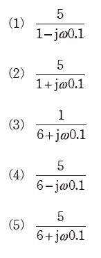 (a) 図において, K=5 , T=0.1 として,入力信号からフィードバック信号までの一巡伝達関数(開ループ伝達関数)を表す式を計算し,正しいものを次の(1)~(5)から一つ選べ。