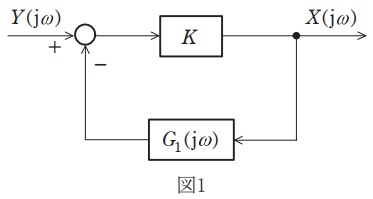 (b) 図1のブロック線図において、閉ループ周波数伝達関数で、ゲインKが非常に大きな場合の近似式として、正しいものを次の(1)~(5)のうちから一つ選べ。